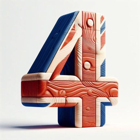 4 digit United Kingdom letters shape 3D wooden Lettering Typeface. AI generated illustration