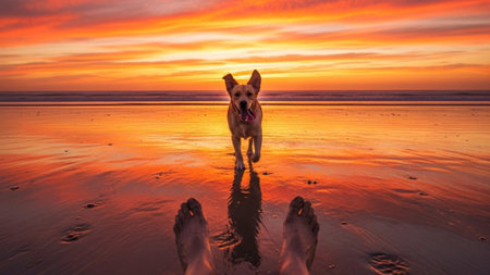 A cinematic ultrawide (16:9) environmental shot of pure joy and companionship. Taken from a low POV