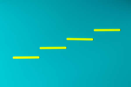 Yellow lines in the form of steps of stairs against the background of the color of sea water. Business growth concept