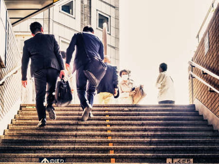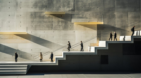Business people climb the steps of the city stairs. impersonal rising up. Career growth and advancement. Increasing and improving skills. Salary increase