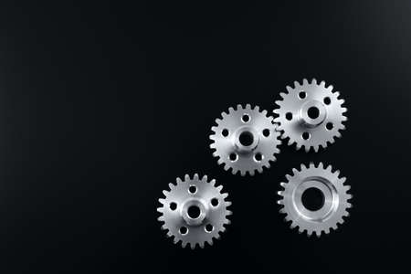 Metal gears interlock, symbolizing teamwork and collaboration in a creative environment.