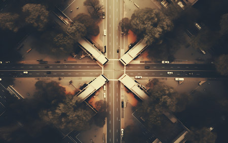 Abstract aerial top down view of crossroad