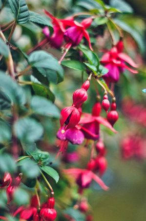 Generative AI : Fuchsia colorful flowers in ornamental garden