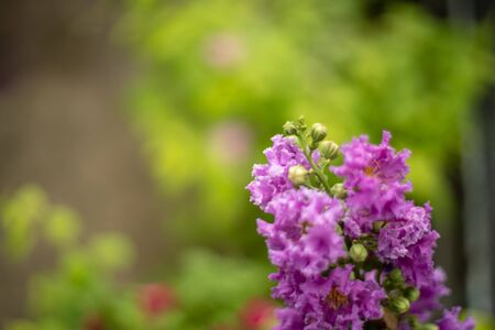Pink roses close up. Home flower impatiens balsamina. Growing plant in garden. Horticulture and household plants.