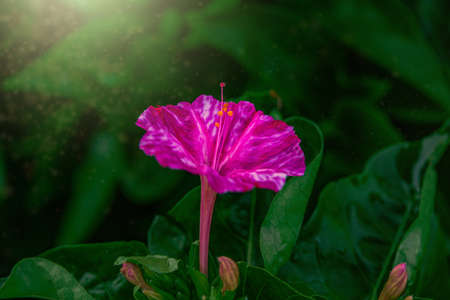 Fuchsia flower surrounded by vegetation. beautiful floral background. spring concept