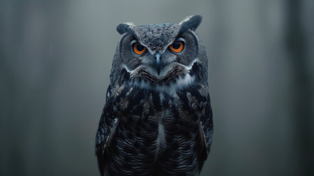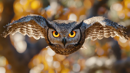 Close-up portrait of a majestic owl with piercing yellow eyes