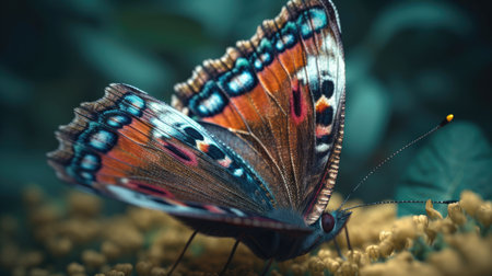 The fragile beauty of a multi colored butterfly in nature generated by artificial intelligence