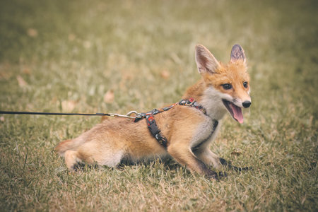 Close up portrait of a red fox with open mouth in the field.ai generated