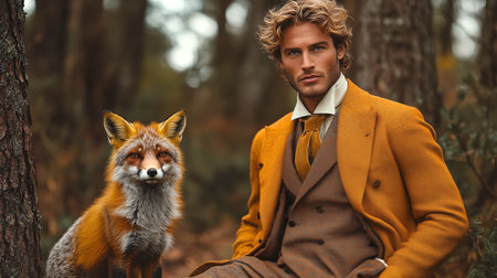 An AI-generated illustration of a fox wearing a vibrant orange coat.