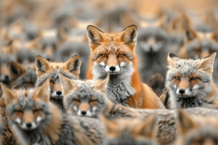 Standout Fox Amidst a Crowd A Glimpse of Wildlife Individuality.