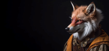 Anthropomorphic fox wearing noble orange robe banner. Vulpine wild creature in royal costume. Generate ai