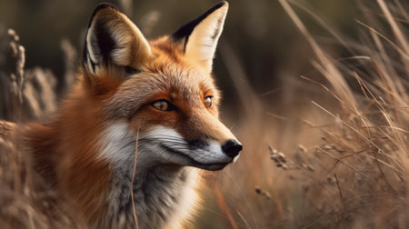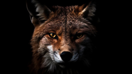 An AI generated illustration of A beautiful red fox, looking away on a black background