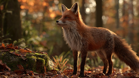 a fox standing regally in a sunlit forest clearing, showing the beauty of wildlife in its natural habitat