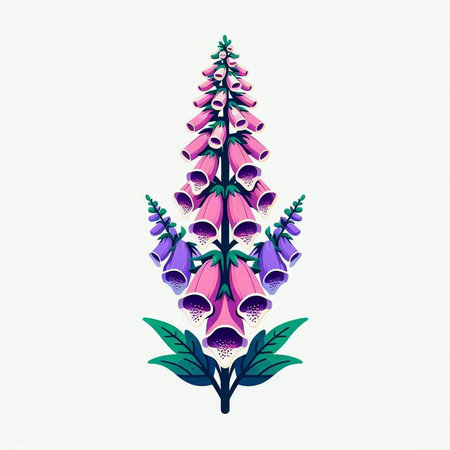 Digitalis purpurea or foxglove flower vector illustration.