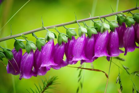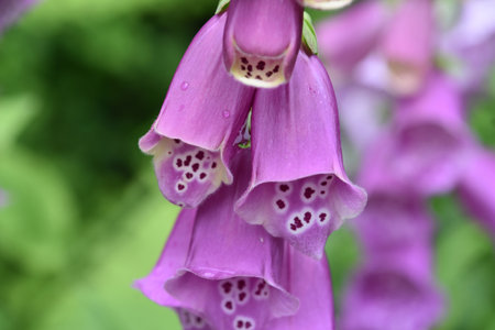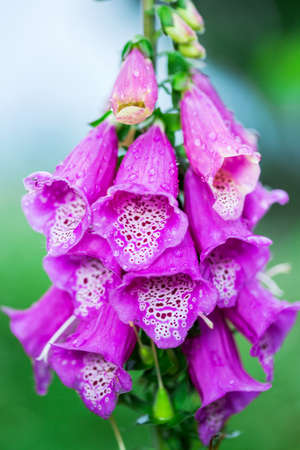 Digitalis purpurea or foxglove flower with dew drops
