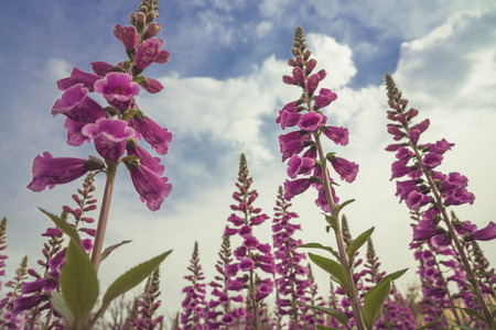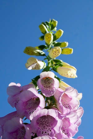 pink flower of digitalis with blue sky background
