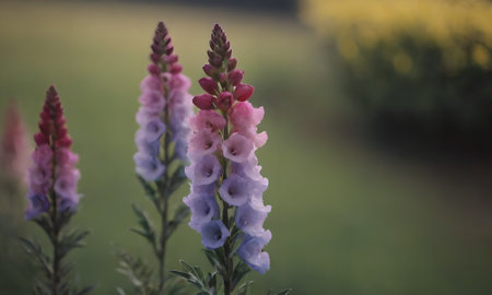 Foxglove flowers with soft bokeh in fusion with green pastel background
