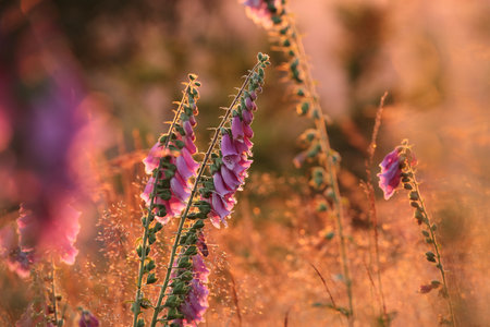 Purple foxglove - Digitalis purpurea during sunset