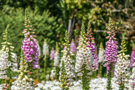 Foxglove (Digitalis) blooms on a flower bed in a summer garden