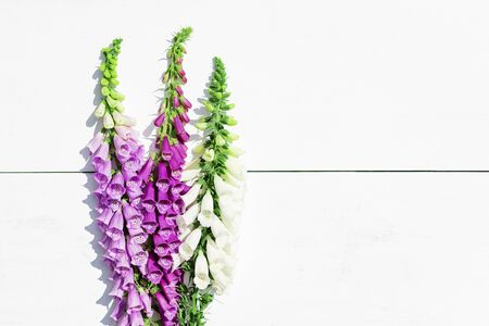 White foxglove flowers in the garden. Floral background.
