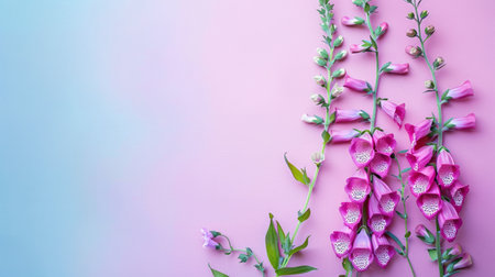 Flowers composition. Foxglove flowers on pink background. Flat lay, top view, copy space