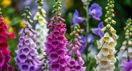 A stunning display of blooming foxgloves, providing a striking and elegant floral backdrop