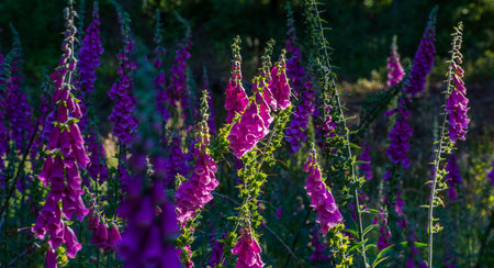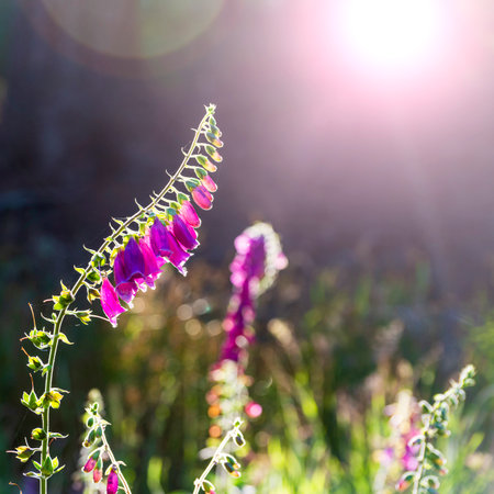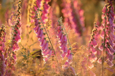 Purple foxglove - Digitalis purpurea during sunrise