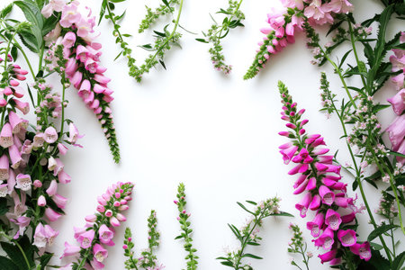 Frame Of Foxgloves On White Background, Lots Of Space Inside