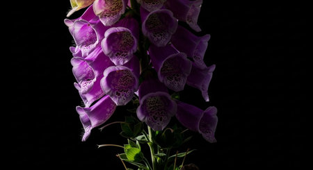 Purple foxglove, Digitalis purpurea, isolated on black background