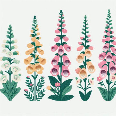 Set of foxglove flowers. Floral design elements. Vector illustration.