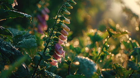 The Foxglove at dawn soft golden sunlight kissing leaves clean air natural color