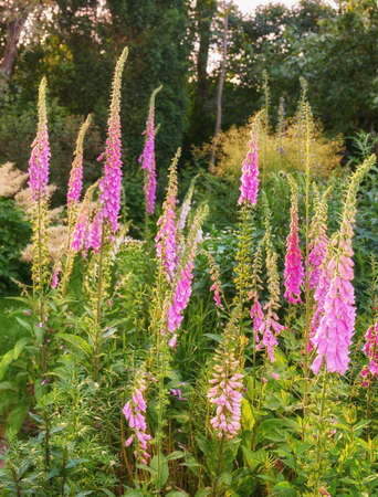 Beautiful pink foxglove flowers blooming in the meadow