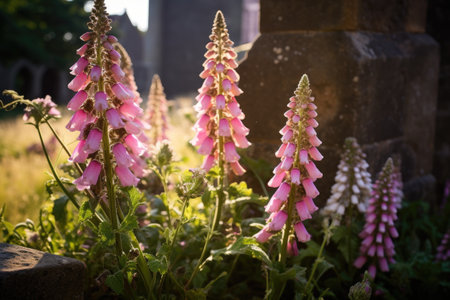 Generative AI : Digitalis purpurea flowering in spring
