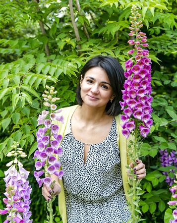 The foxgloves in the garden. Colorful foxgloves - digitalis purpurea.