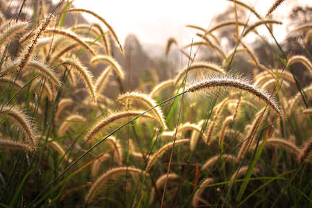 Blured picture of Grass flowers with sunrise in the morning.