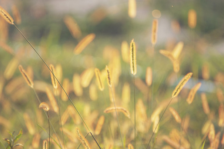 Beautiful flower grass in the garden. Field with flower glass. Beautiful summer with flower grass. Flower grass in sunshine day.(soft focus and vintage effect)