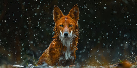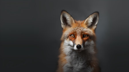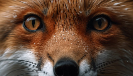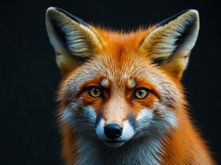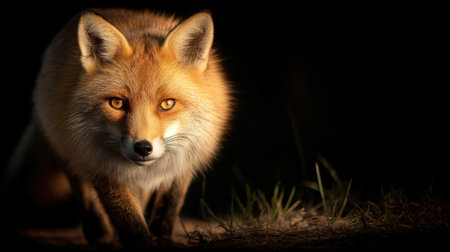 AI Generated. Dramatic close up shot of an orange fox with intense dark background lighting