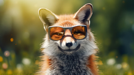 Portrait of a red fox (Vulpes vulpes) in a field, selective focus, wildlife photography, ai generated