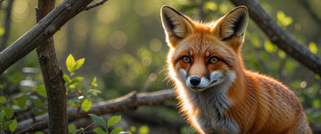 AI Generated. Curious Red Fox with Golden Eyes in Natural Setting
