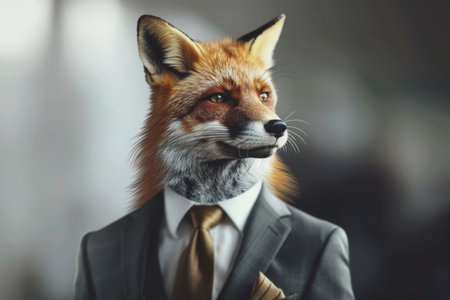 A painting showcasing a fox dressed in a sophisticated suit and tie, exuding charm and style with its classy attire.