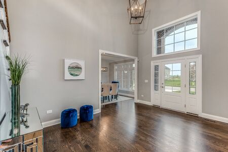An open large and wide interior front door hallway foyer with transom