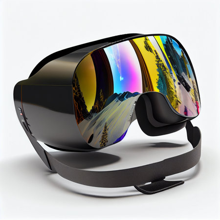 Virtual reality glasses stylized as ski mask on white background. Ai generative