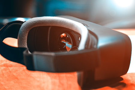 VR. Virtual Reality equipment on the table. creative photo.