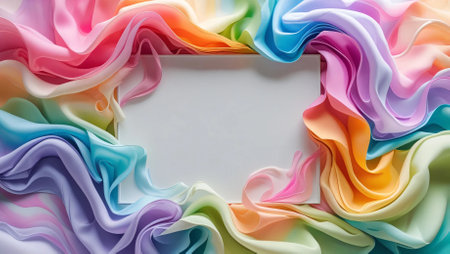 A beautifully designed blank space surrounded by colorful, flowing fabric-like layers, creating a dynamic and artistic frame perfect for creative projects.