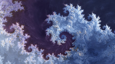 A mesmerizing fractal design with swirling, intricate patterns in shades of blue and purple, creating a sense of depth and complexity.