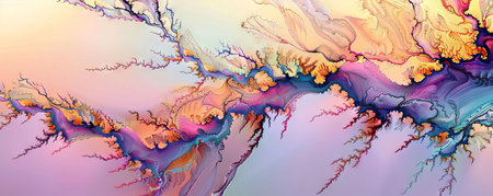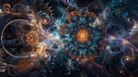 Abstract fractals painting. The composition is a symphony of geometric beauty, with fractals spiraling outward, branching and bifurcating in intricate ways. AI-generated