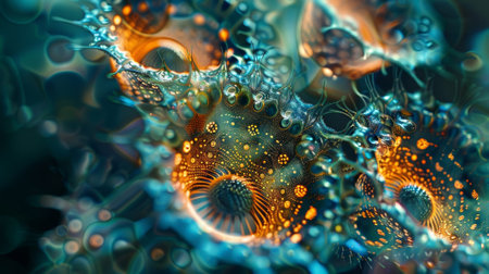 A closer look reveals the intricate patterns and structures of the subatomic particles resembling marine life in a miniature world