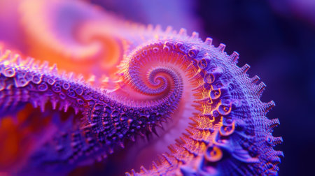 A macro shot of a digital fractal piece highlighting the intricate details and spiraling patterns in vivid bold colors revealing the infinite possibilities within digital creation