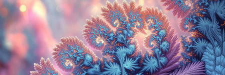 Abstract Fractal Designs in Vibrant Teal, Blue, and Pink, Digital Landscape with Dreamy Bokeh