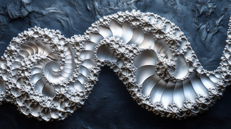 The image is a beautiful and intricate design of two spirals, one on top of the other, with a blue background. The spirals are made of white and appear to be floating in the air. AI generated